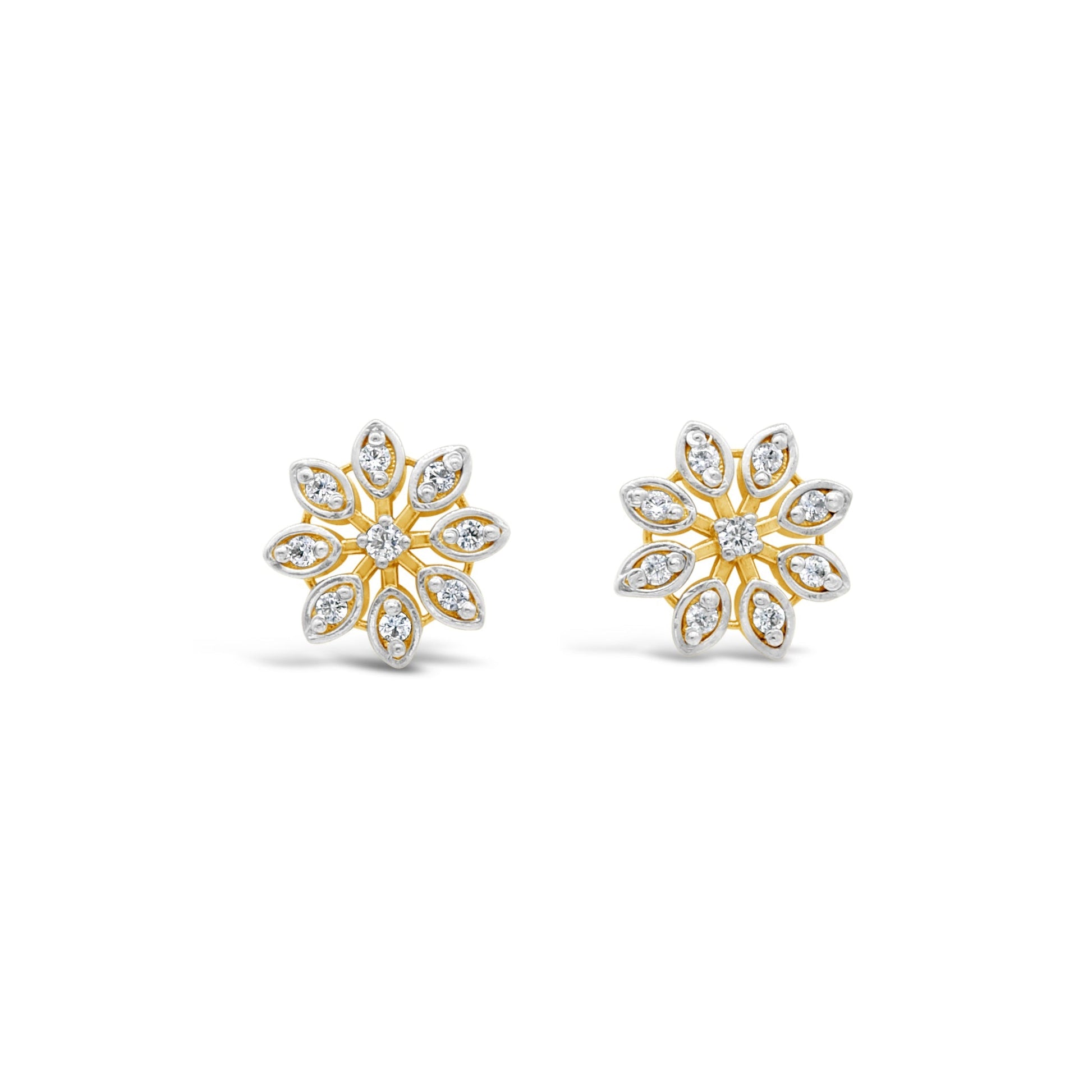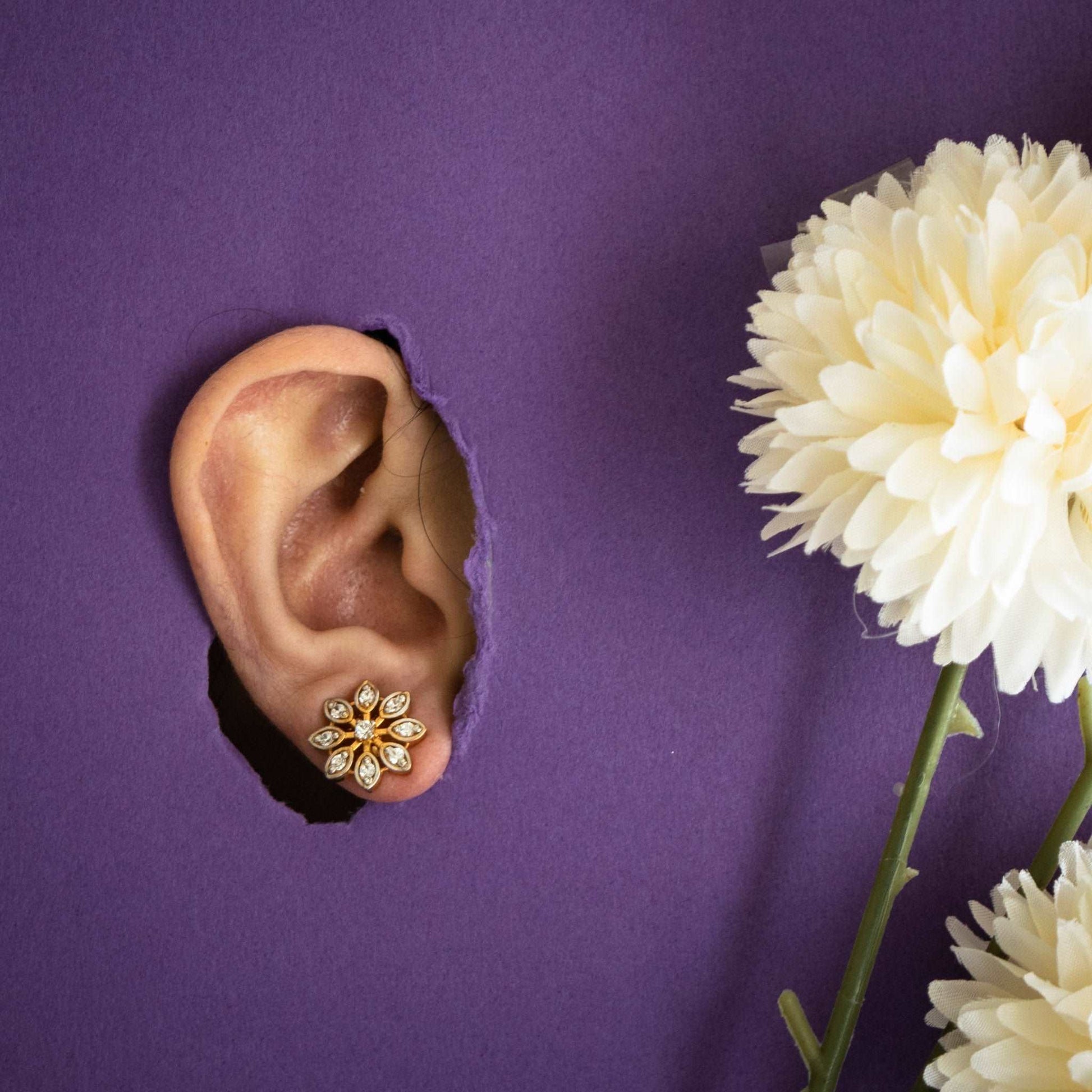 Crafted from pure silver and finished with a luxurious gold plating, these tops feature intricate floral patterns adorned with sparkling zircons.