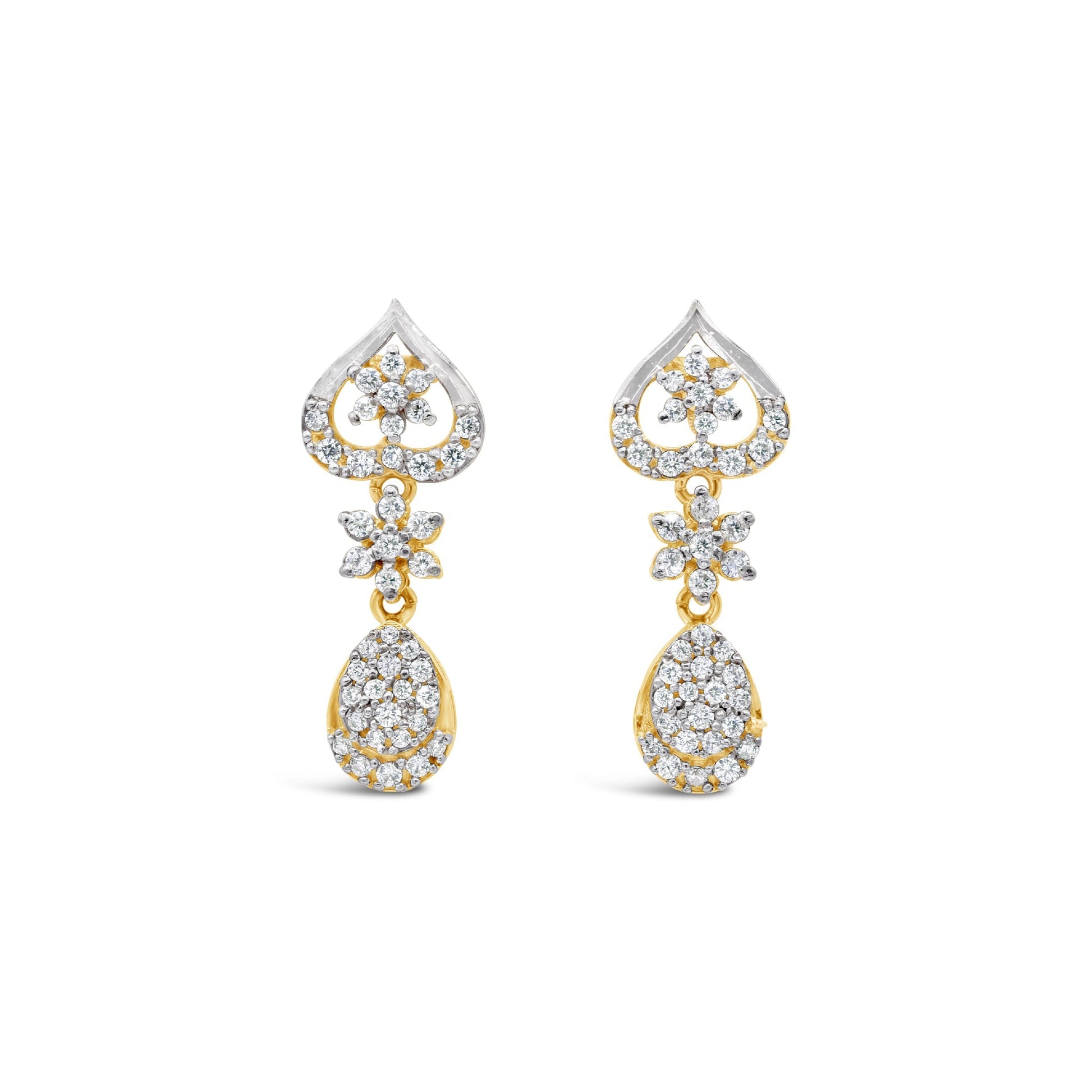 Discover Nuqrah’s zircon dangling earrings, crafted in genuine silver with a golden polish. These long chandi earrings are designed to add elegance and sparkle to any outfit. Perfect silver earrings for women, featuring shimmering zircon stones and a sleek, sophisticated design. Shop now at Nuqrah for high-quality, timeless jewellery that exudes luxury and style.